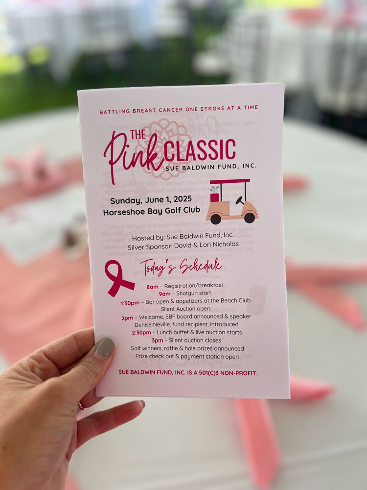 The Pink Classic Golf Tournament committee is pleased to announce that this year’s event, benefiting the Sue Baldwin Fund, will take place on Monday, June 8, 2026 at Horseshoe Bay Golf Club.